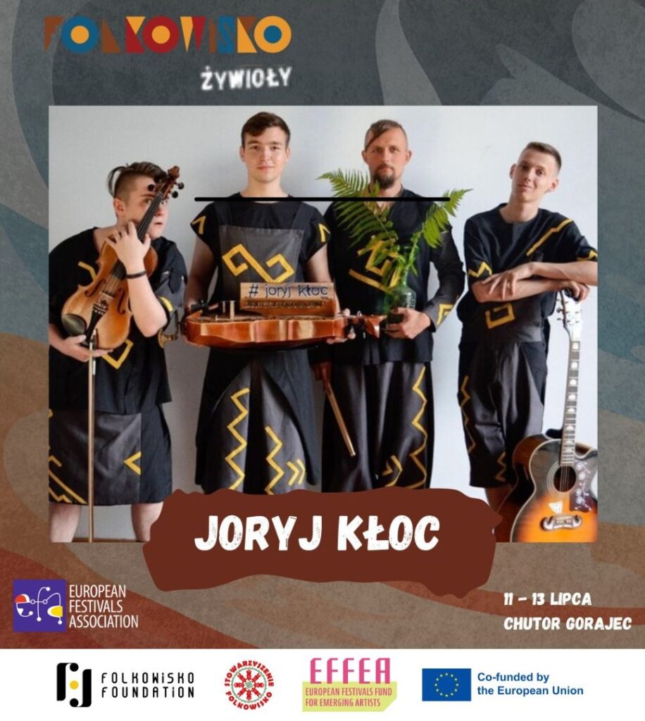 We are thrilled to announce that during this year’s edition of the Folkowisko Festival, we will welcome exceptional artists from Ukraine as part of the EFFEA residency – Music of Borderland. Performing live on stage in Gorajec: the electrifying band Joryj Kłoc and the uniquely talented artist Gordiy Starukh!